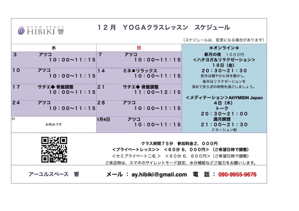 2025.12月ヨガ・スケジュール