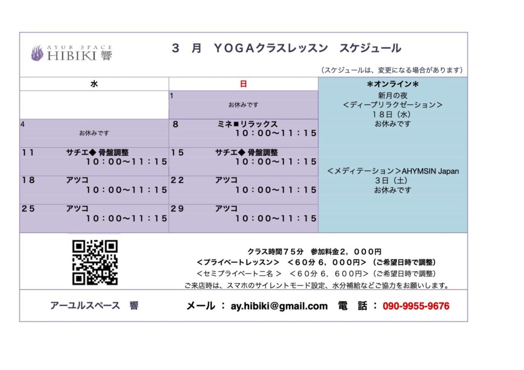 2026.3月ヨガ日程
